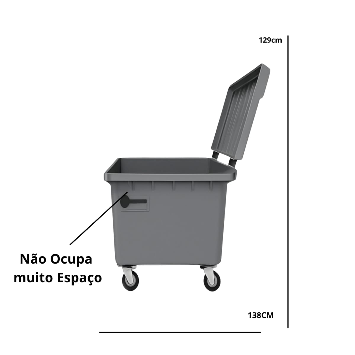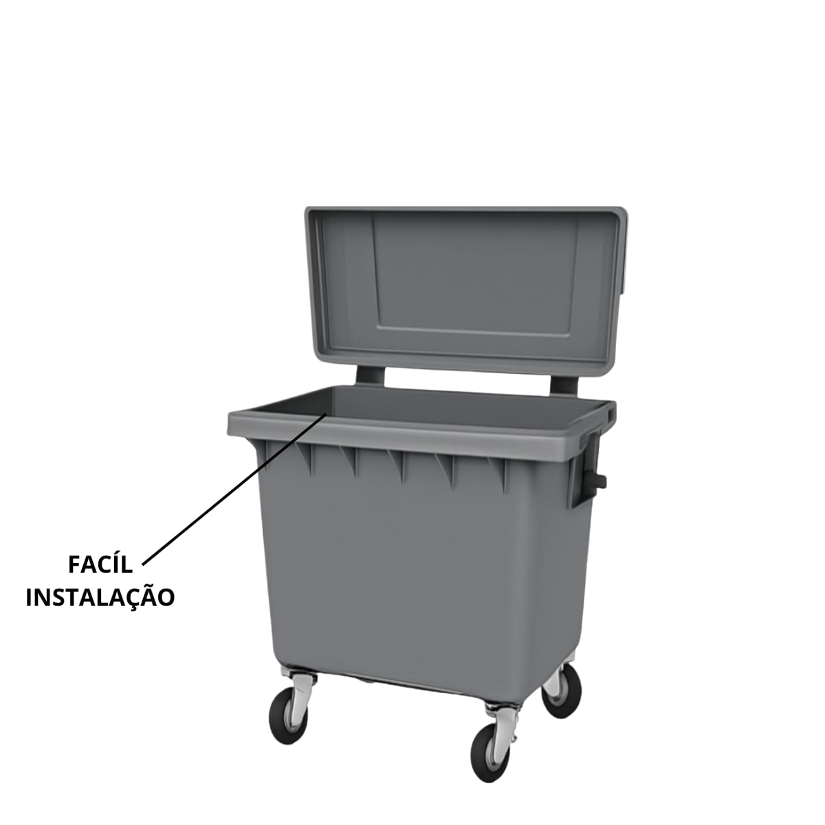 ✔ Tampa articulada: Fixada ao corpo do contentor, facilita a abertura e manuseio com maior segurança.