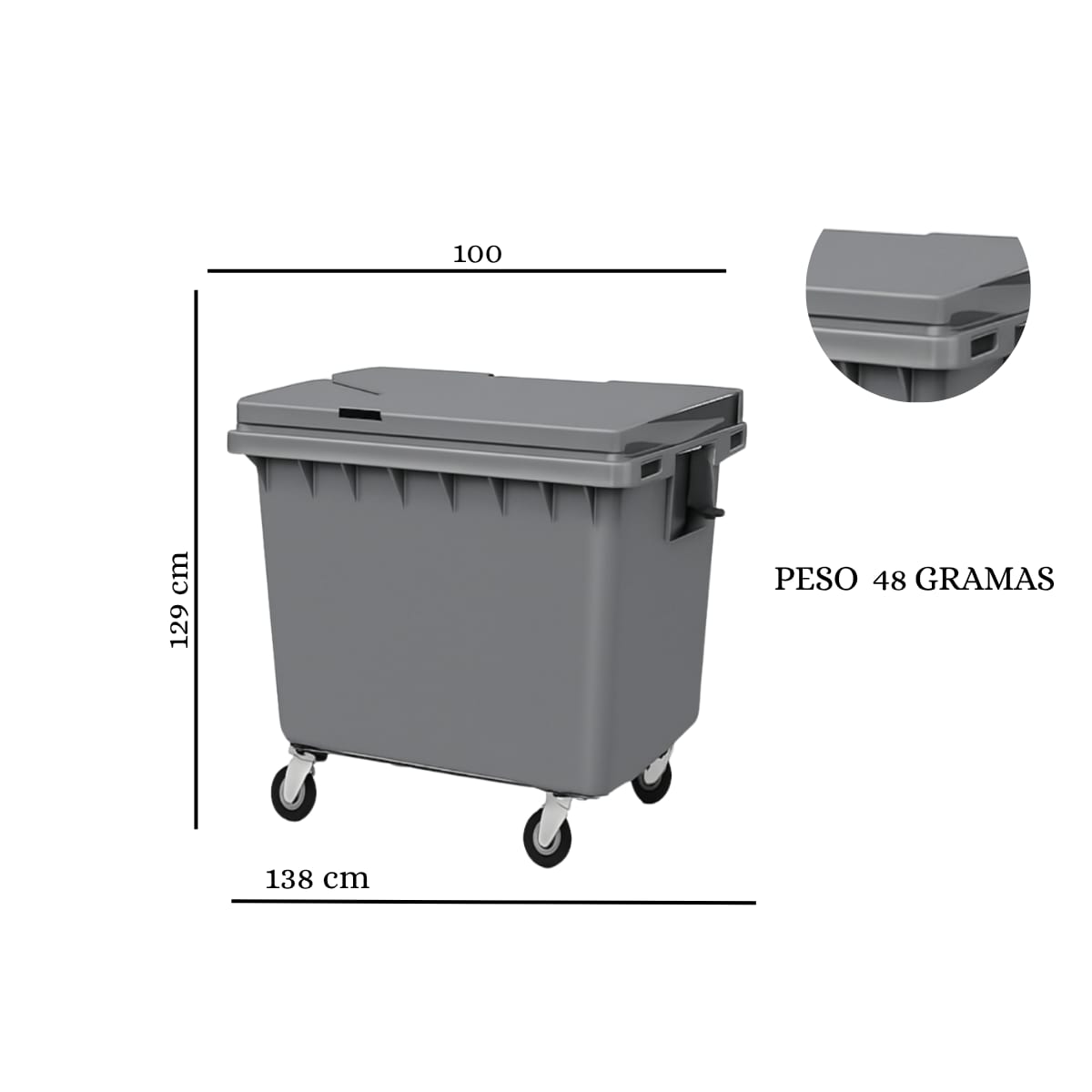 O Contentor Plástico JSN 1000L é um equipamento robusto, resistente e versátil, projetado para o manuseio e armazenamento de resíduos sólidos com segurança e eficiência. Produzido por injeção de termoplásticos em polietileno de alta densidade (PEAD), o material oferece alta resistência mecânica e térmica, além de conter aditivos antioxidantes e proteção UV classe 8, impedindo o desbotamento da cor mesmo sob exposição intensa ao sol.