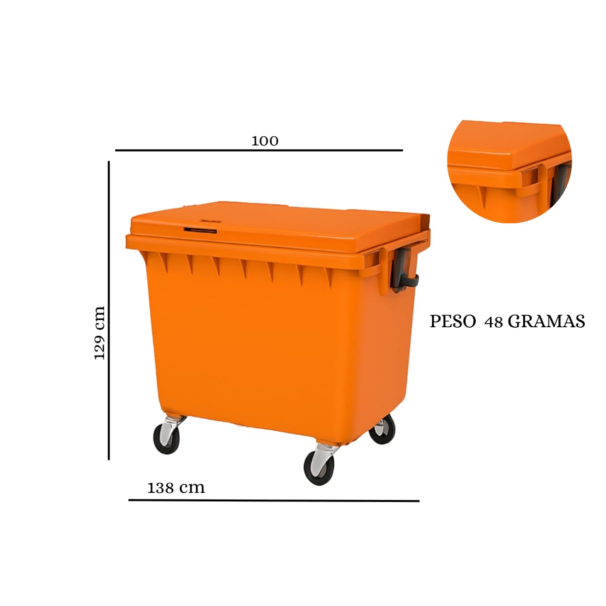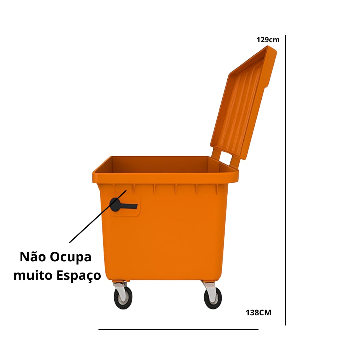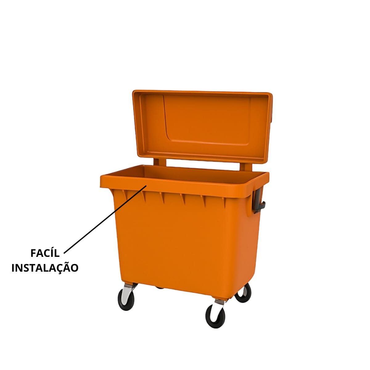 Tampa articulada: Fixada ao corpo do contentor, facilita a abertura e manuseio com maior segurança.