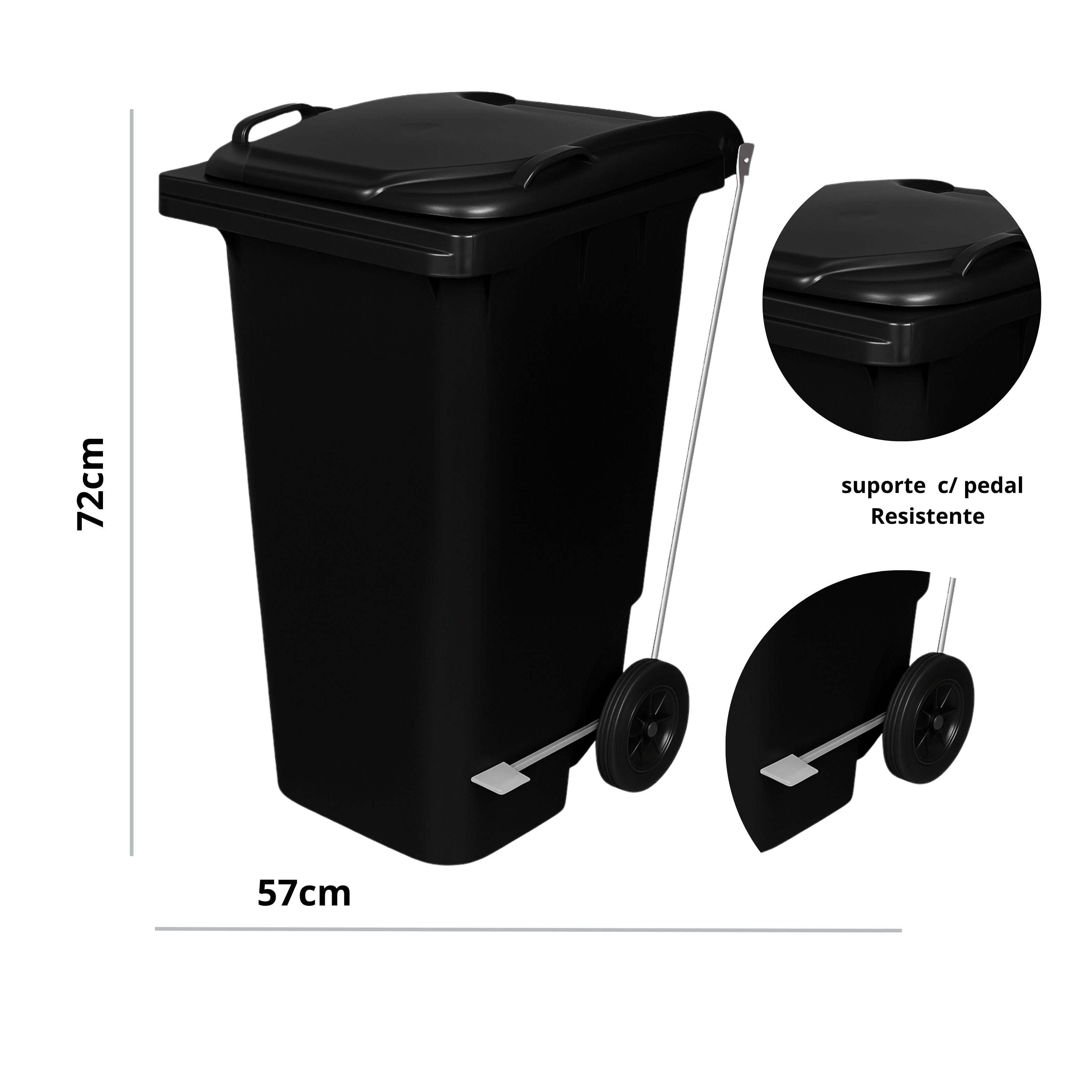 CONTENTOR PLÁSTICO 240L COM PEDAL PRETO