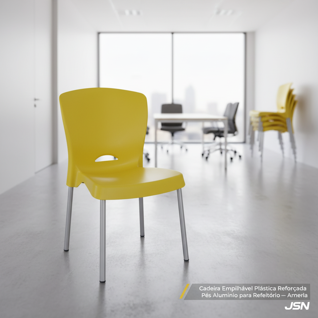 Adquirimos 50 unidades da Cadeira de Plástico JSN Amarela para nosso refeitório e salas de espera. A facilidade de limpeza do polipropileno é um diferencial enorme para um ambiente hospitalar, garantindo a biossegurança. Os pés em alumínio conferem uma estabilidade impressionante e a cor amarela trouxe um toque de vivacidade. Estamos muito satisfeitos com a durabilidade e o design funcional.