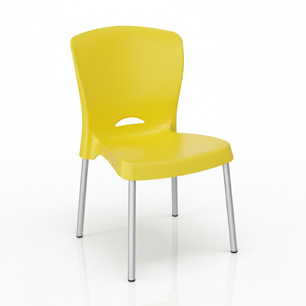 Cadeira Empilhável Plástica Reforçada Pés Alumínio para Refeitório — Amarela
