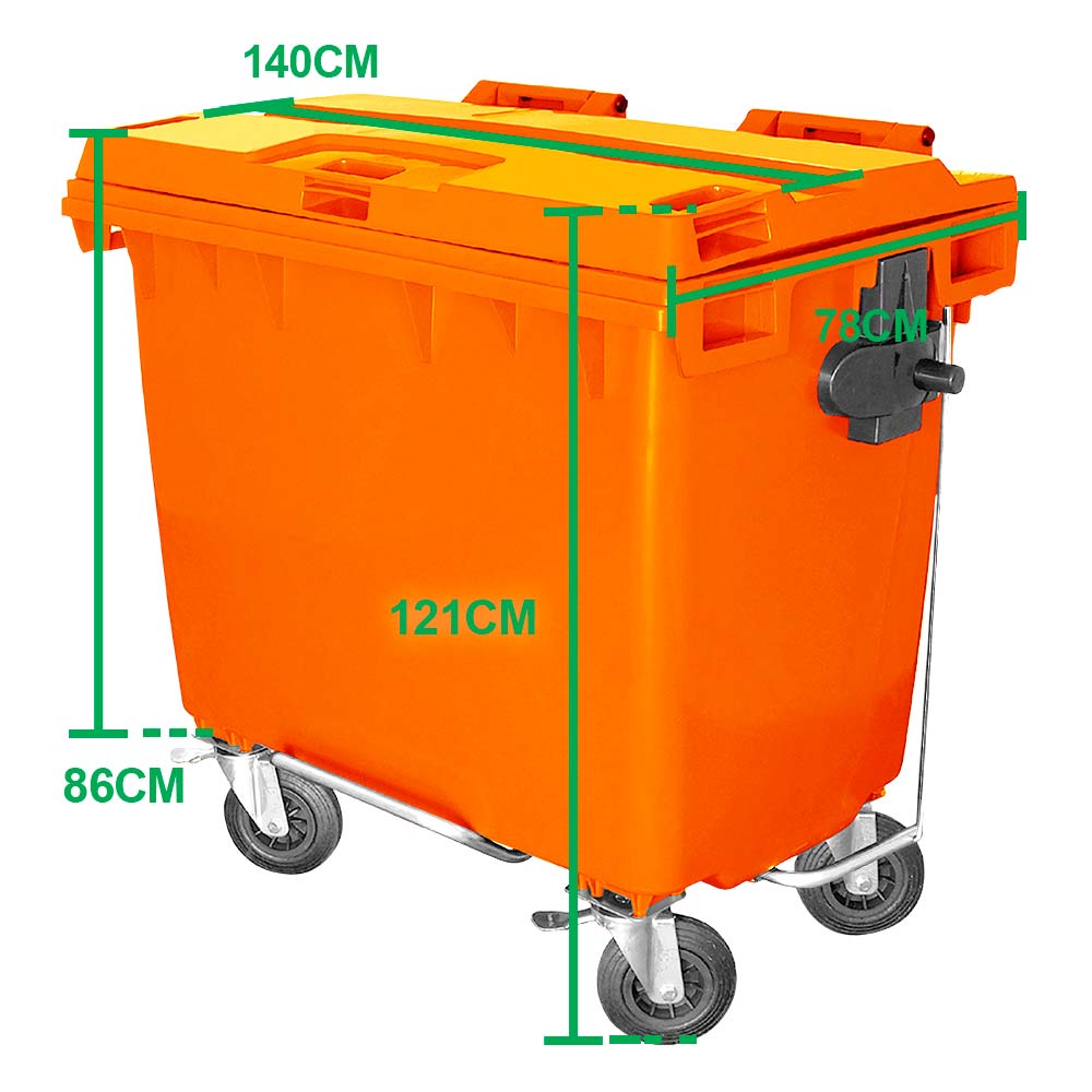 O Contêiner de Lixo JSN fabricado na cor laranja, tem a capacidade de 660 Litros. É utilizado em locais abertos e movimentados como áreas, condomínios, shoppings e lugares mais fechados como salões, c