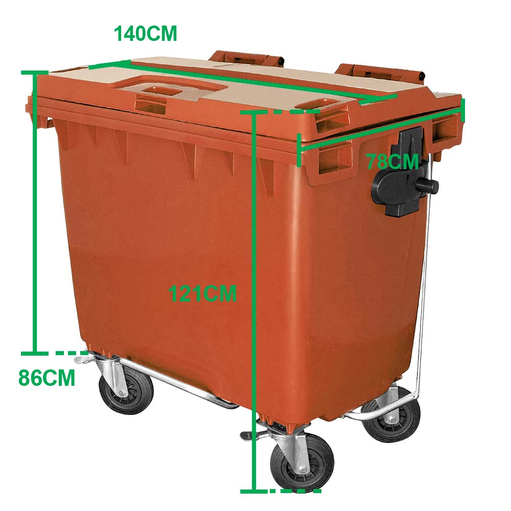 O Contêiner de Lixo JSN fabricado na cor Marrom, tem a capacidade de 660 Litros. É utilizado em locais abertos e movimentados como áreas, condomínios, shoppings e lugares mais fechados como salões, co