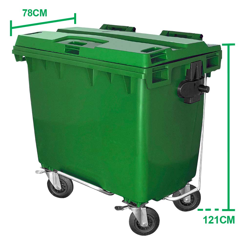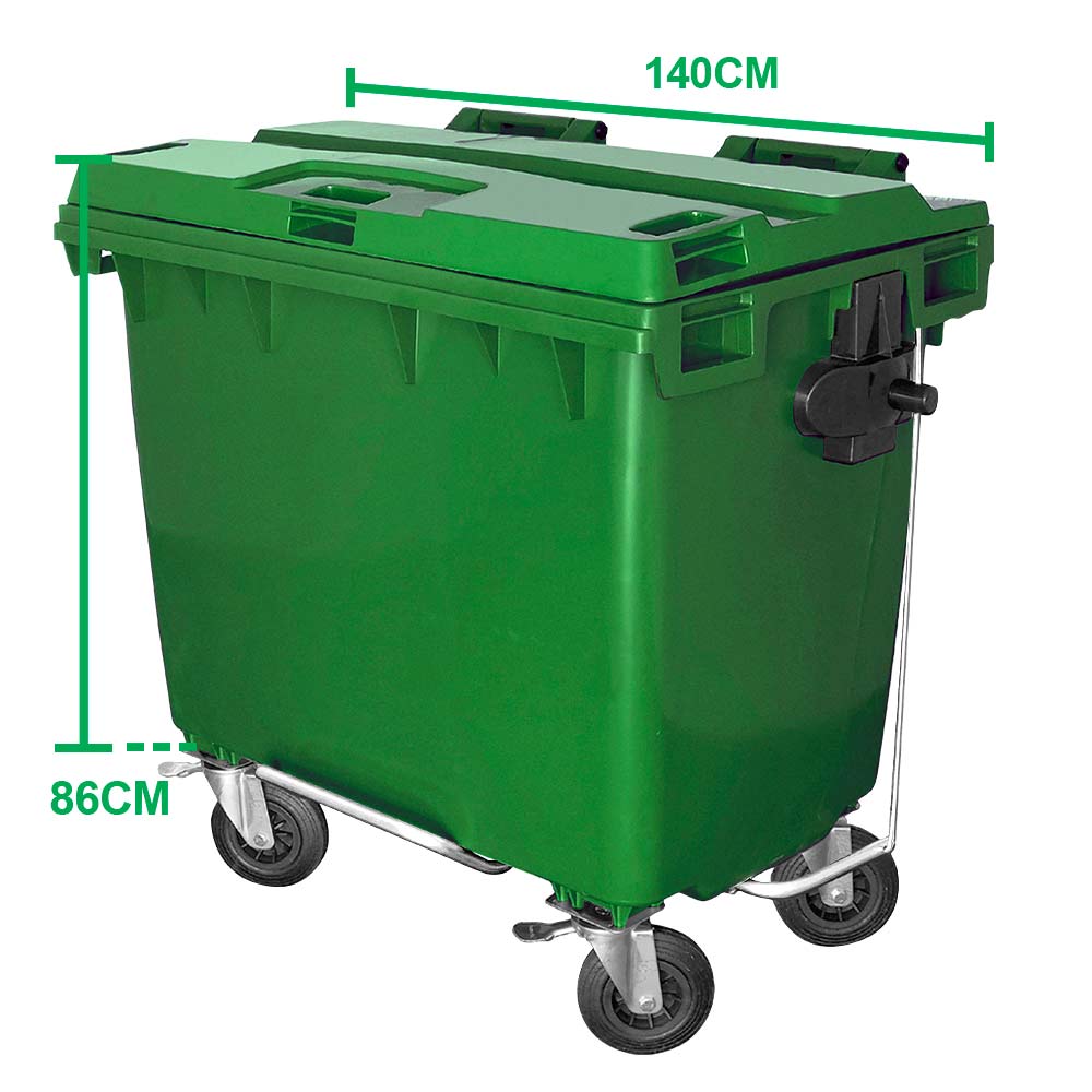 O Contêiner de Lixo JSN fabricado na cor Verde, tem a capacidade de 660 Litros. É utilizado em locais abertos e movimentados como áreas, condomínios, shoppings e lugares mais fechados como salões, com