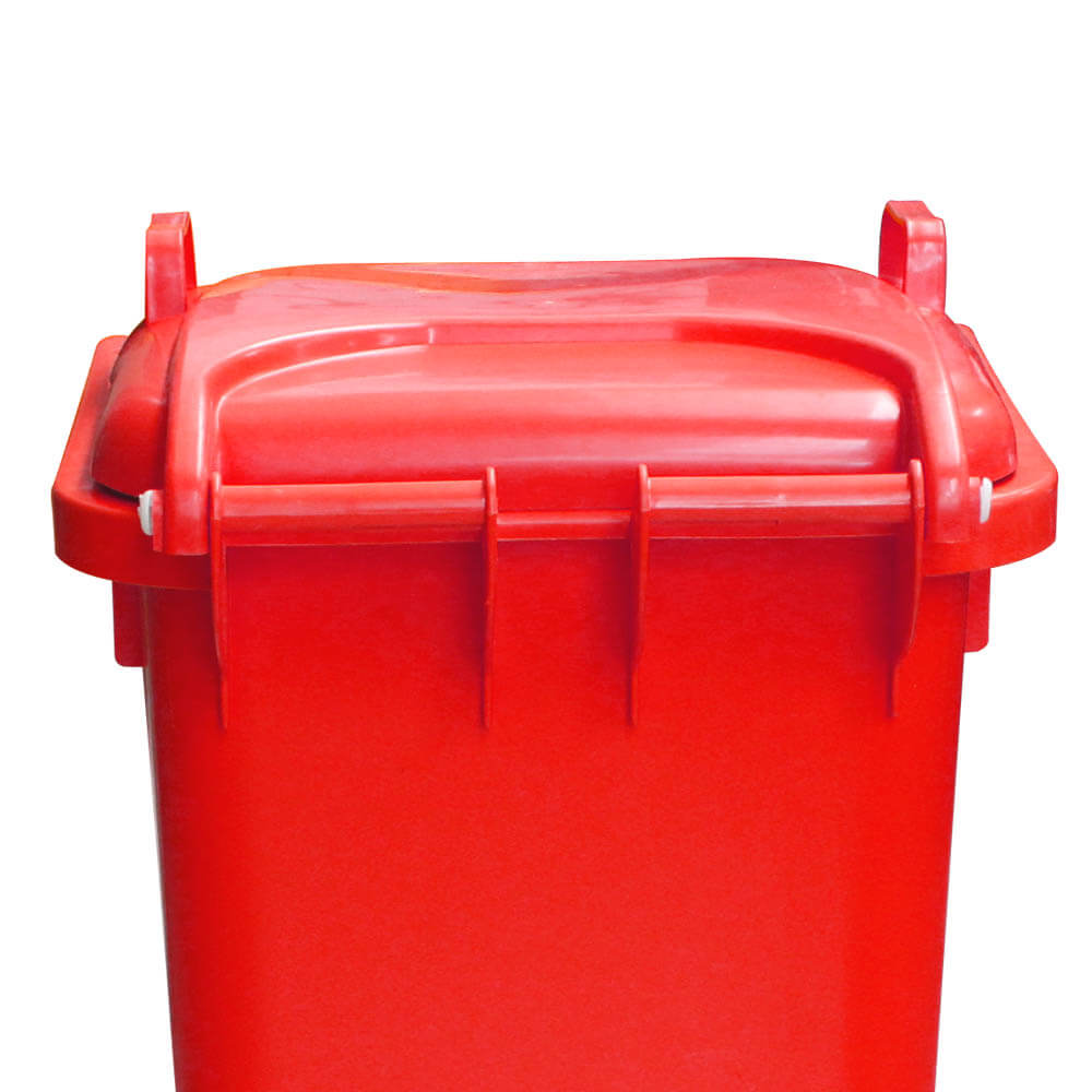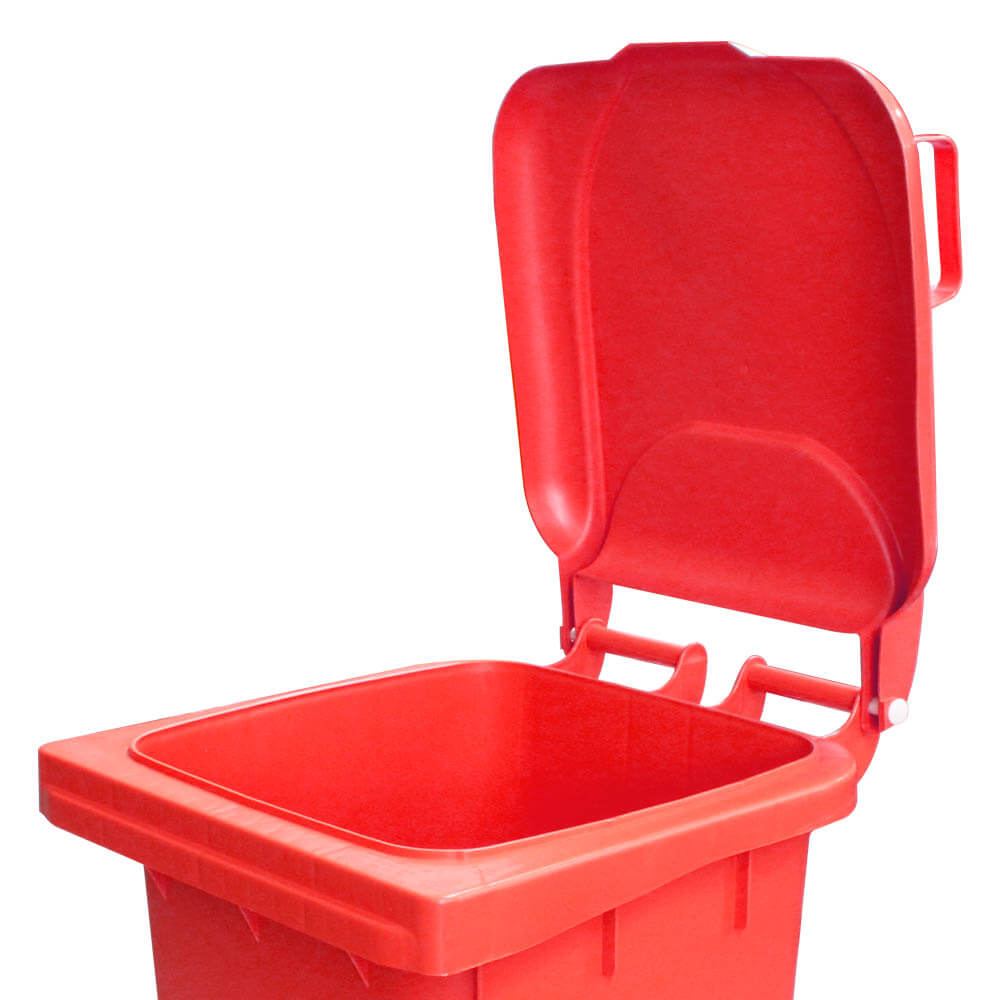 O Contêiner de Lixo JSN na cor Vermelho, possui rodas e freios, com a capacidade de 120 litros. É muito utilizado em locais abertos e movimentados, que contém grande tráfegos de pessoas, como áreas, c