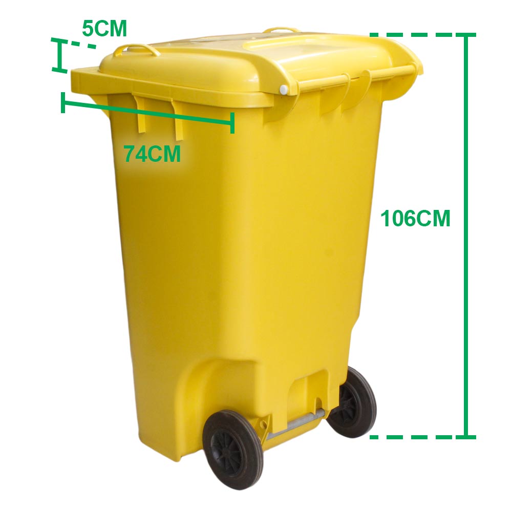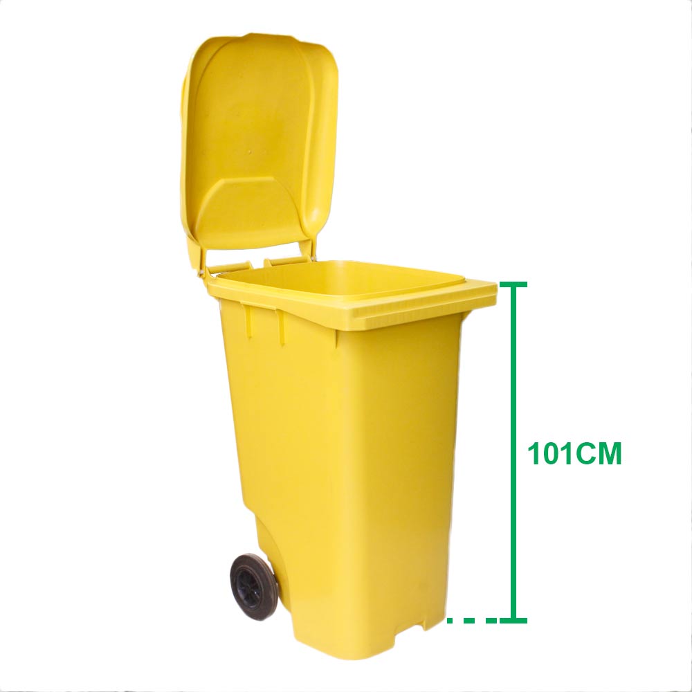 O Contêiner de Lixo JSN na cor amarela, possui rodas e freios, com a capacidade de 240 litros. É muito utilizado em locais abertos e movimentados, que contém grande tráfegos de pessoas, como áreas, co