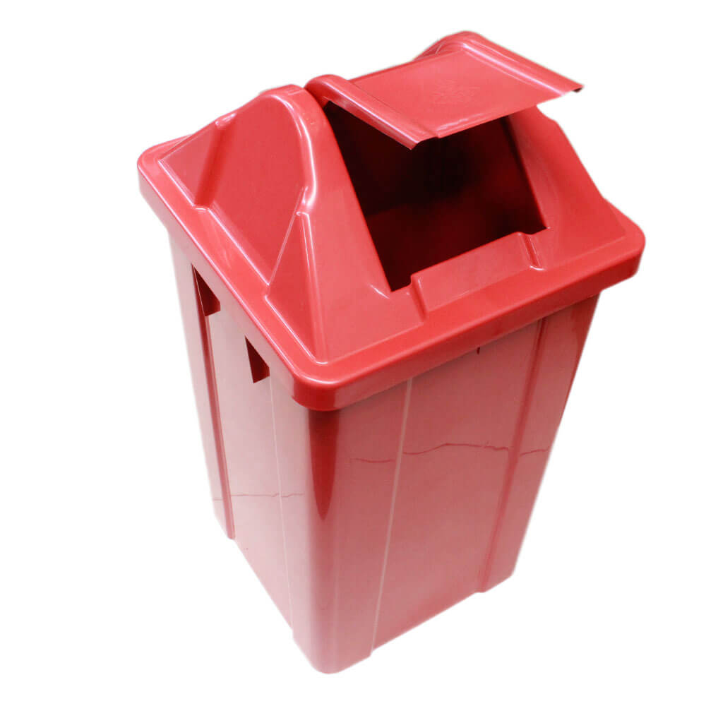 A Lixeira Plástica JSN na cor vermelha é um coletor de lixo ideal para ser utilizado em diversos tipos de ambientes internos e externos que necessite de uma lixeira grande como, shoppings, academias,