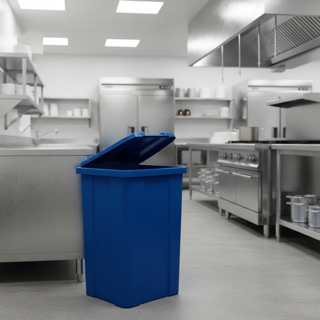 A Lixeira Plástica JSN na cor azul é um coletor de lixo ideal para ser utilizado em diversos tipos de ambientes internos e externos que necessite de uma lixeira grande como, shoppings, academias, esco