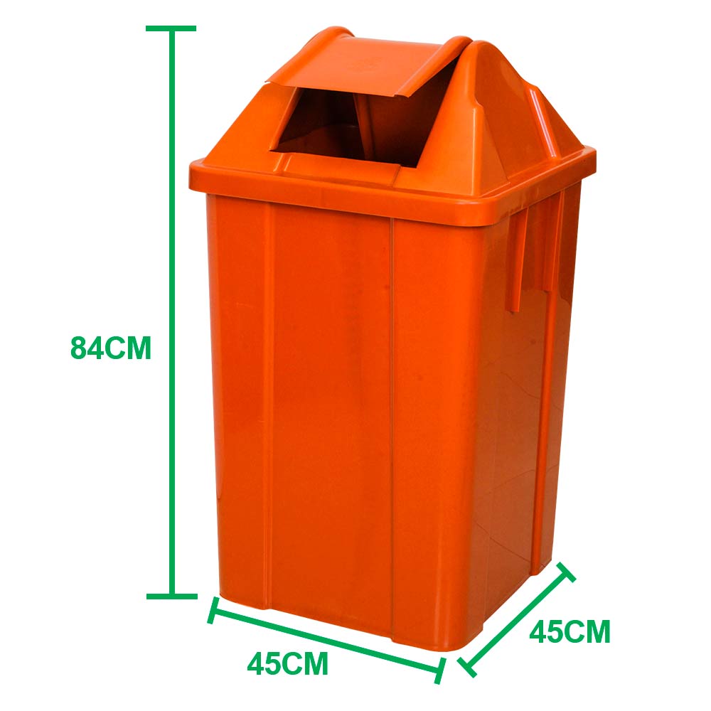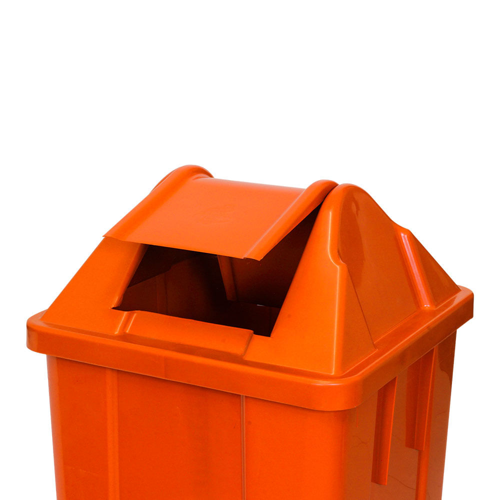 A Lixeira Plástica JSN na cor laranja é um coletor de lixo ideal para ser utilizado em diversos tipos de ambientes internos e externos que necessite de uma lixeira grande como, shoppings, academias, e