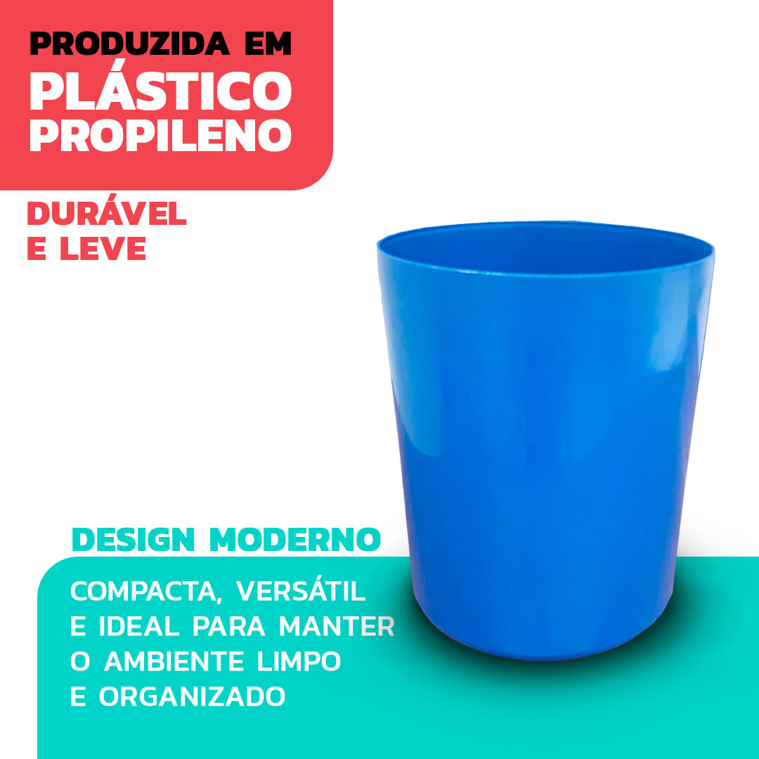 A Lixeira Plástica JSN é um item prático e versátil, amplamente utilizado em ambientes domésticos, escritórios e espaços comerciais, com um formato simples e funcional que permite um descarte rápido d