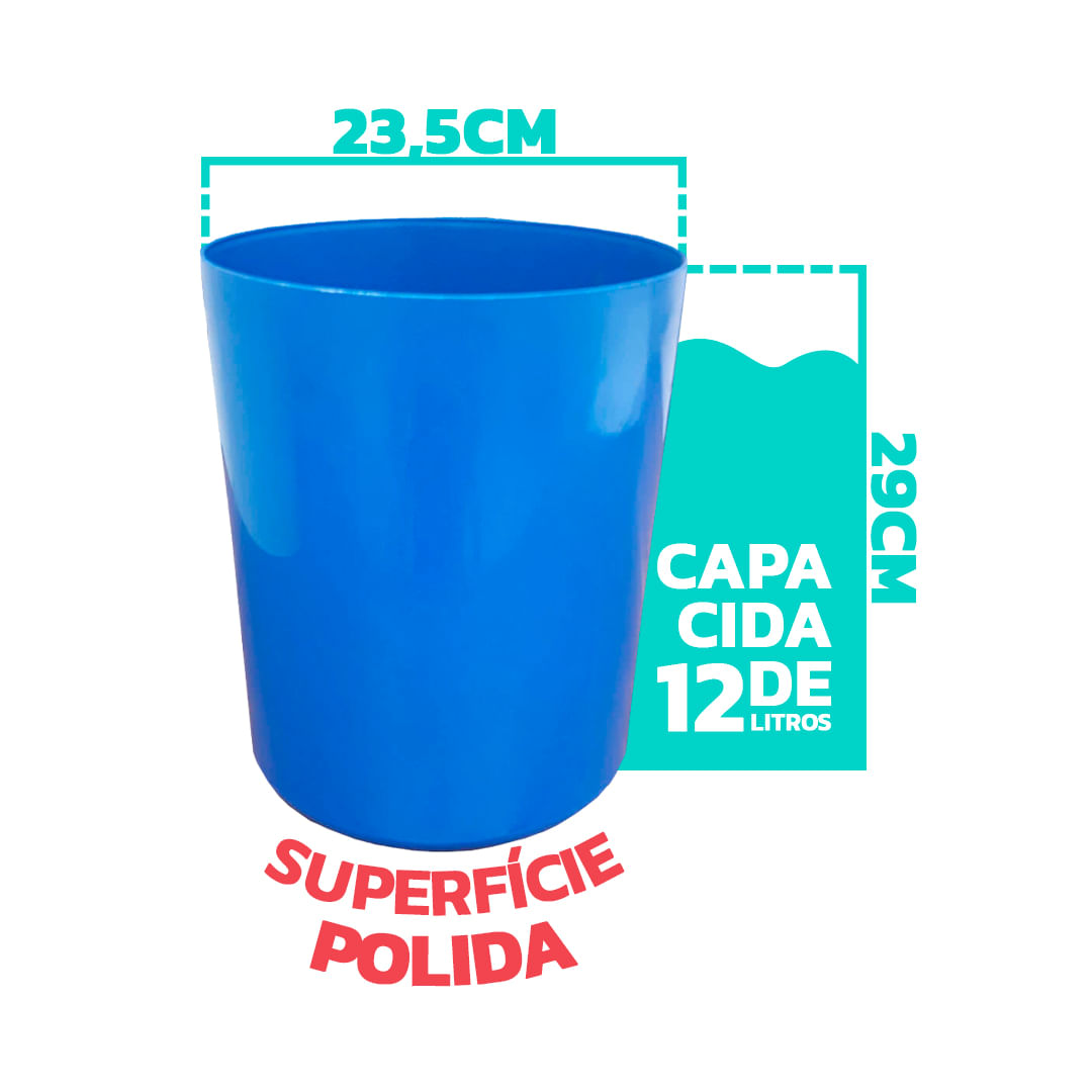 Lixeira Plastica JSN Sem Tampa 12 Litros Azul
