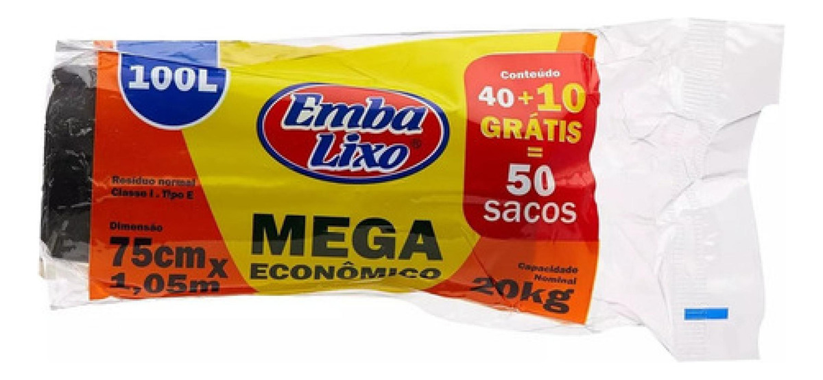 Saco De Lixo Embalixo Preto Econômico 50 Unidades 100 Litros