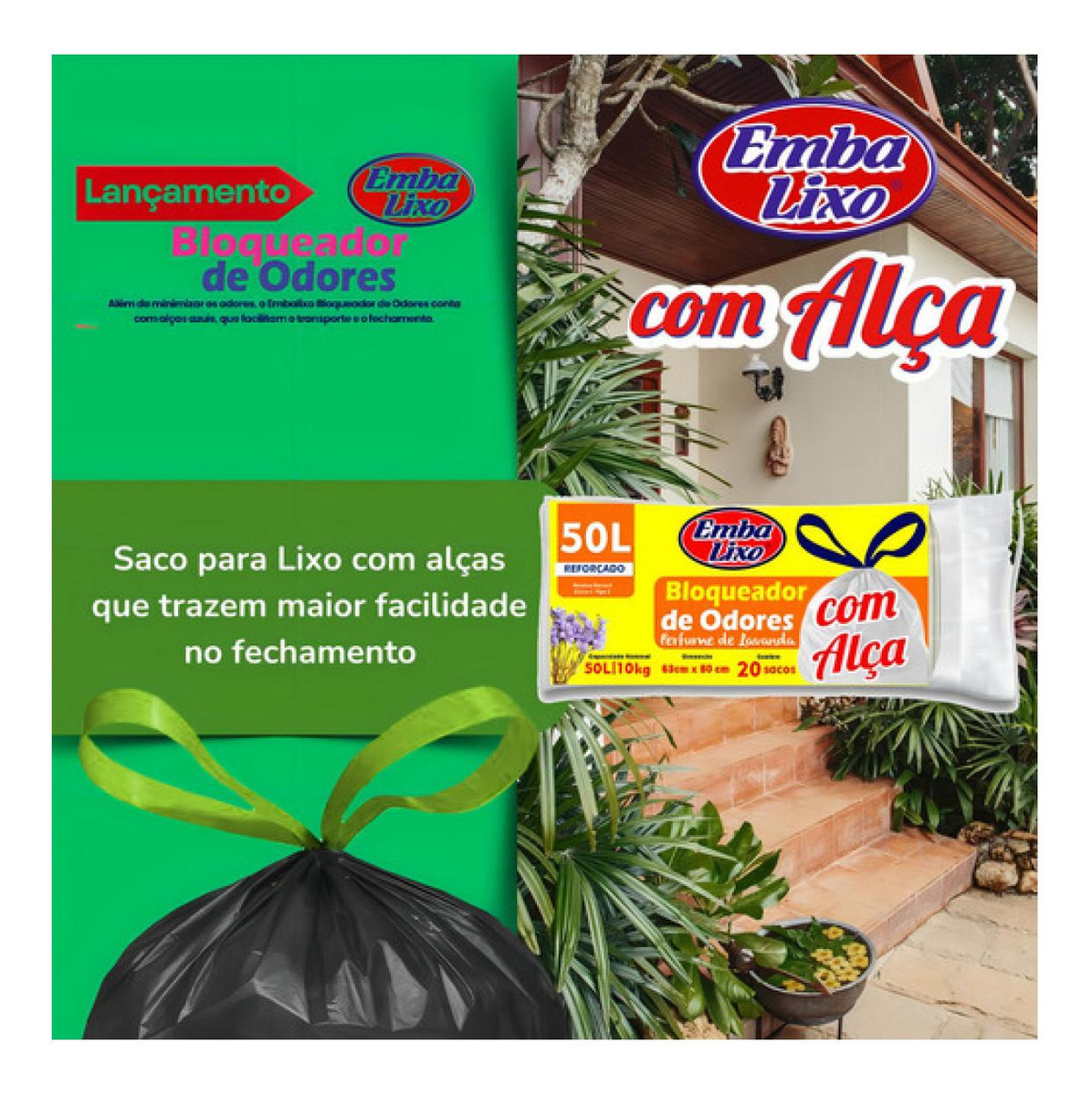 Saco Lixo Com Alça Bloqueador De Odor 50 Litros Embalixo